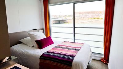 Suite amplia y cómoda con cama grande separable, baño (lavabo, ducha y aseo privados, toallas incluidas), secador, televisión, caja fuerte y radio. Situada en el puente principa con ventanas, ofrece una vista panorámica del paisaje.