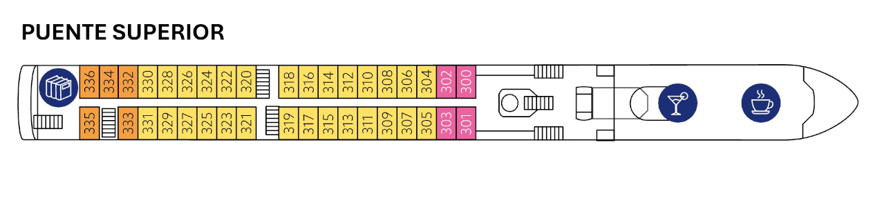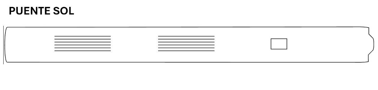 En la terraza del puente sol, podrá disfrutar tomar el sol, tomarse un refresco o simplemente disfrutar de la navegación en las tumbonas.
