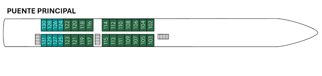 Las cabinas de la cubierta principal cuentan con ventanas fijas. Las situadas en la parte de popa tienen aproximadamente 11,5 m² e incorporan una cama abatible y un sofá cama, ofreciendo una solución práctica y confortable para tu descanso.
