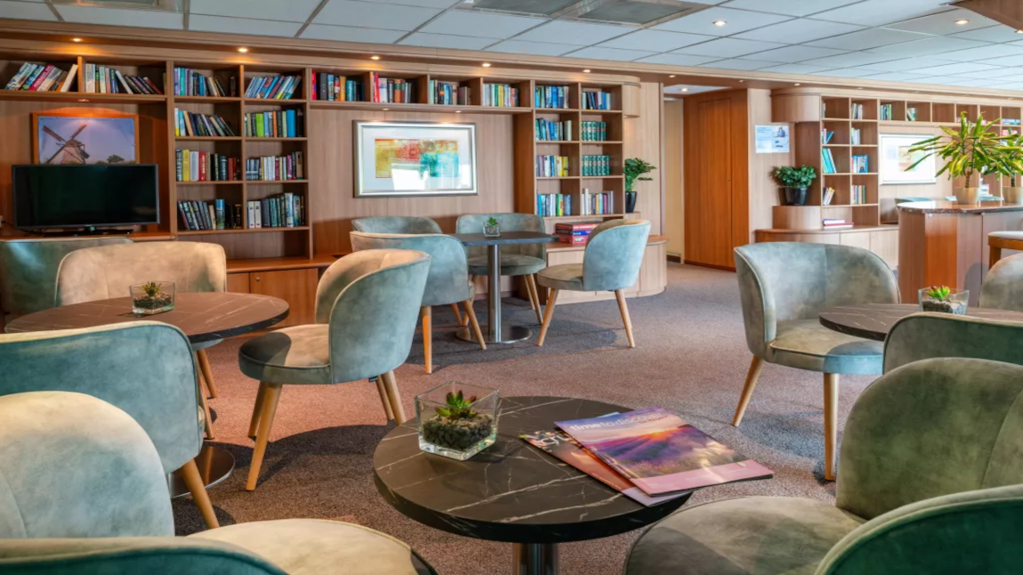 En el Panorama Bar es el lugar donde se reunirá con la tripulación y resto de pasajeros para charlar de la navegación, tomar algo después de visitar las ciudades y disfrutar de la animación y navegación a través de los grandes ventanales de la sala.