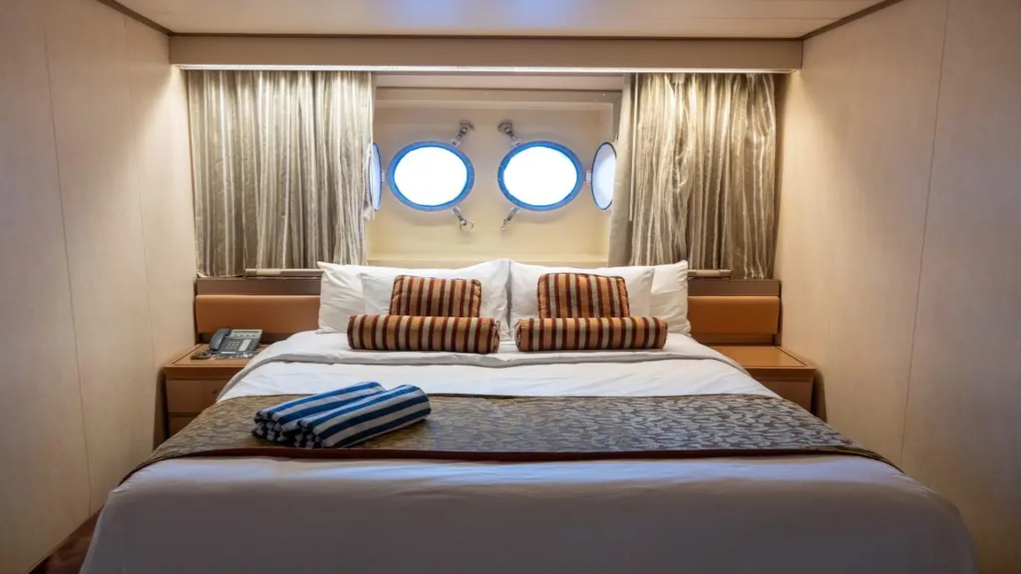Camarote interior. Cuenta con dos camas bajas y una cama alta y un sofá cama individual. También disponen de baño con ducha, teléfono, secador de pelo, caja fuerte y TV. Las camas individuales se pueden juntar bajo petición Televisor, teléfono y caja fuerte. Cuarto de baño con ducha y secador de pelo.17