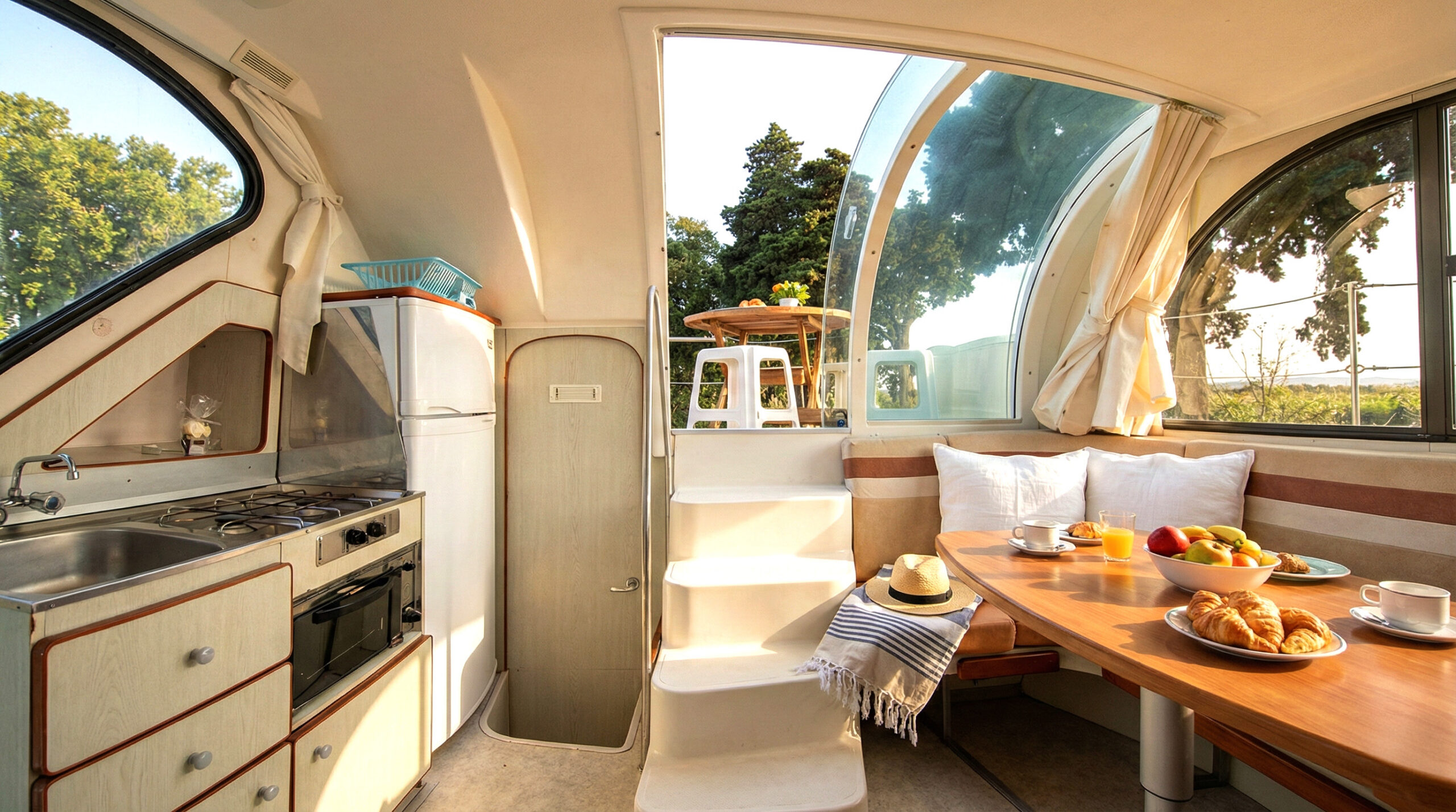 En la zona de cocina, el equipamiento es completo para la vida a bordo: horno, cocina de 2 fuegos, congelador y un frigorífico de 220 litros, ideal para organizar estancias largas. Con dos camas dobles, una cama individual y opciones convertibles, este barco se adapta fácilmente a diferentes configuraciones de grupo, posicionándose como una de las opciones más equilibradas en confort, espacio y facilidad dentro del turismo fluvial sin licencia.