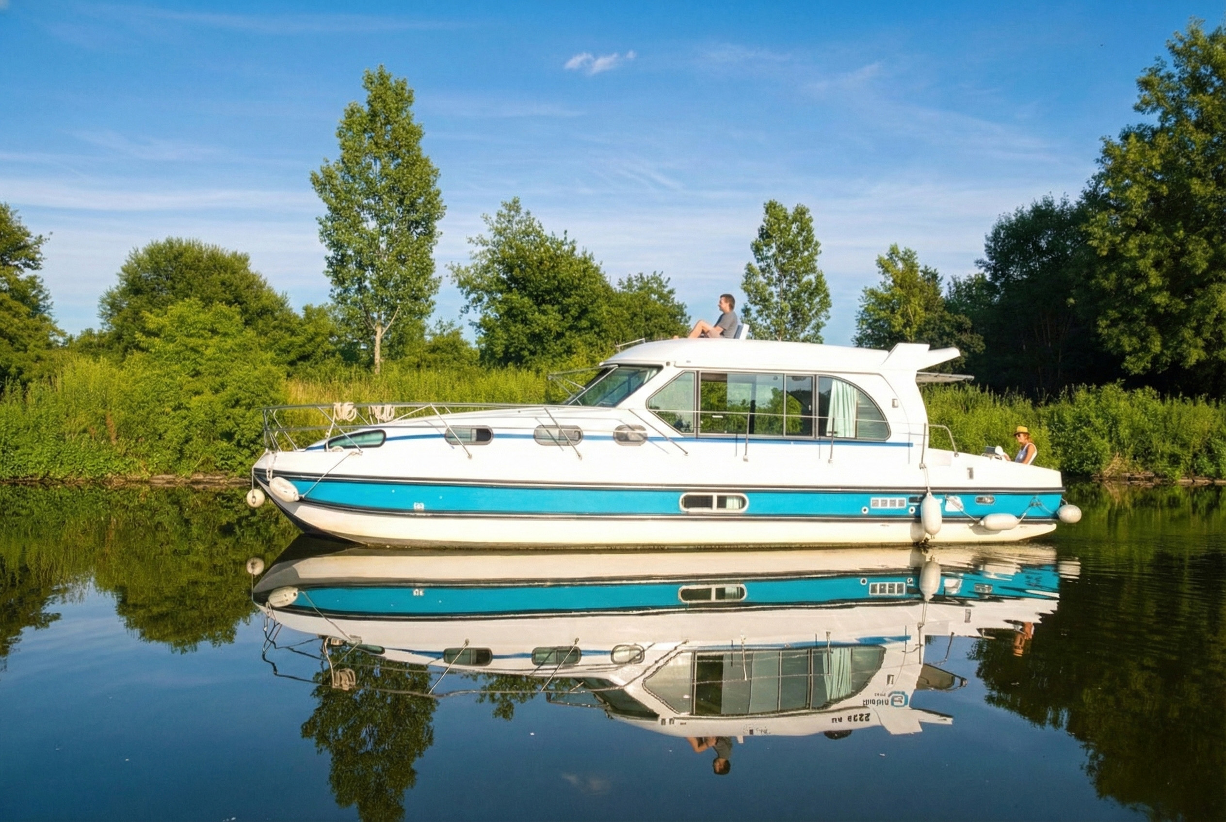 El Cruiser Comfort 8/10 personas de la gama Comfort de Riverly, antes Nicols, es un barco sin licencia ideal para familias numerosas o grupos que buscan espacio, autonomía y navegación sencilla. Con cuatro cabinas dobles y doble puesto de mando interior y exterior, ofrece una experiencia de turismo fluvial cómoda y estable para recorrer canales y ríos de Europa con total libertad.
