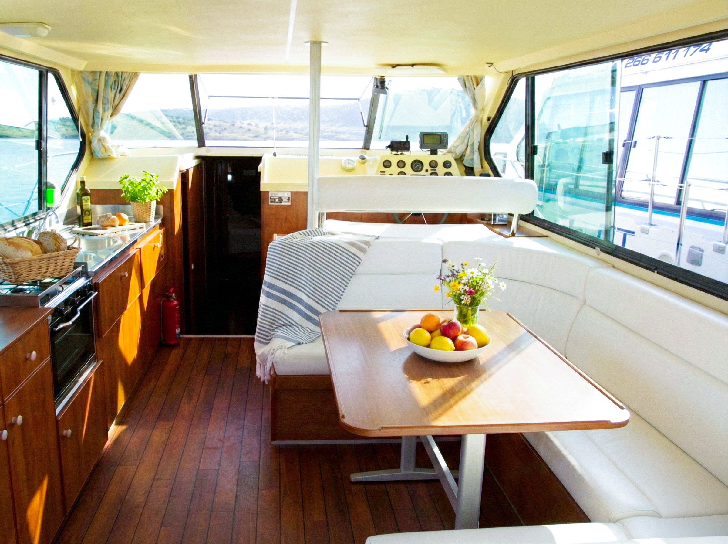 Este modelo está diseñado para quienes desean alquilar un barco sin licencia en grupo grande sin renunciar a la comodidad. Dispone de cuatro cabinas dobles independientes, lo que permite alojar hasta 8-10 personas, con una distribución pensada para equilibrar convivencia y privacidad. Es una opción especialmente adecuada para familias con niños o grupos de amigos que quieren compartir el viaje sin sensación de saturación a bordo.