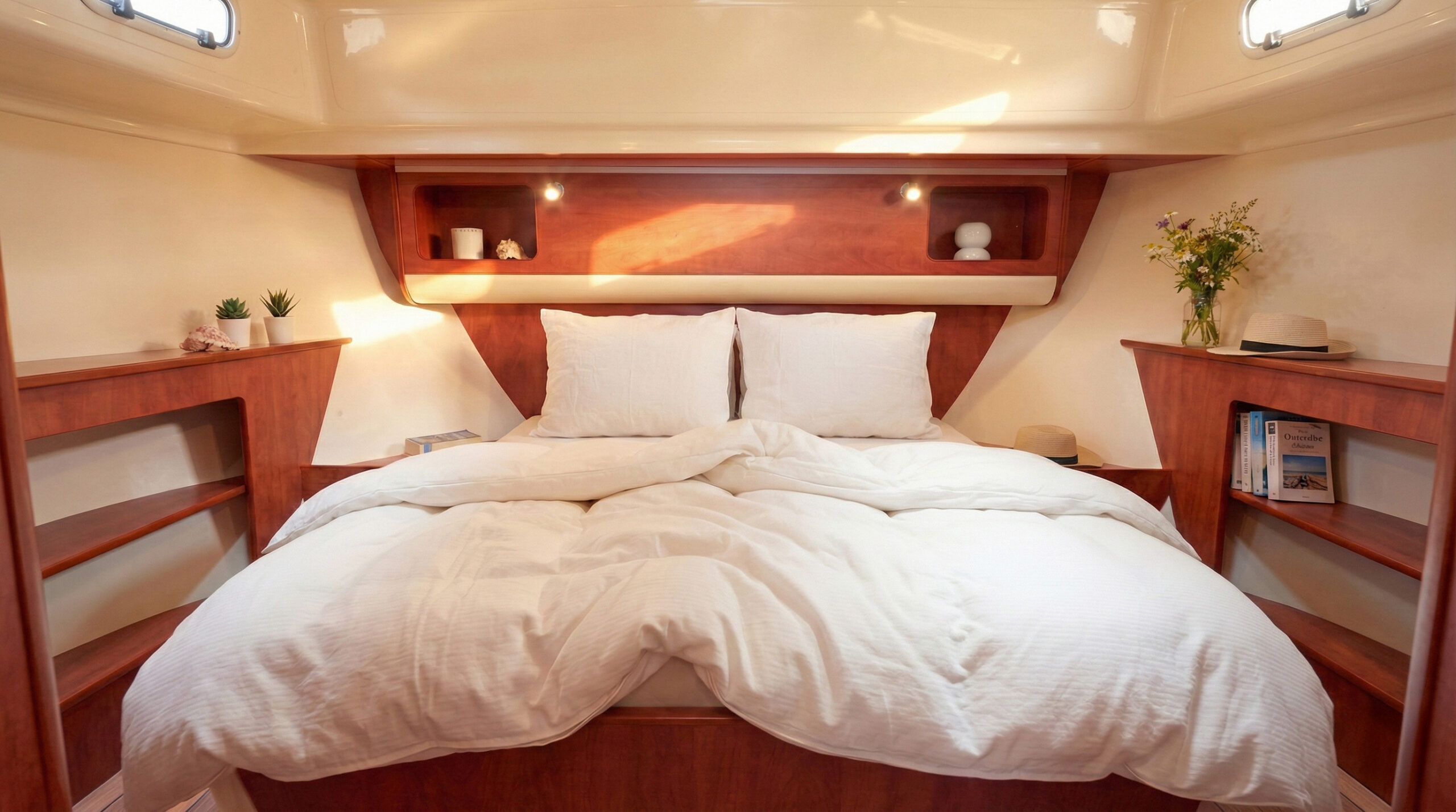 Este modelo está diseñado para quienes quieren alquilar un barco sin licencia con un nivel de confort superior sin complicaciones técnicas. Dispone de dos cabinas versátiles: una con cama doble y otra con camas individuales convertibles, lo que permite adaptarse fácilmente a diferentes configuraciones de viajeros. Es una opción muy práctica tanto para dos parejas como para familias con niños.