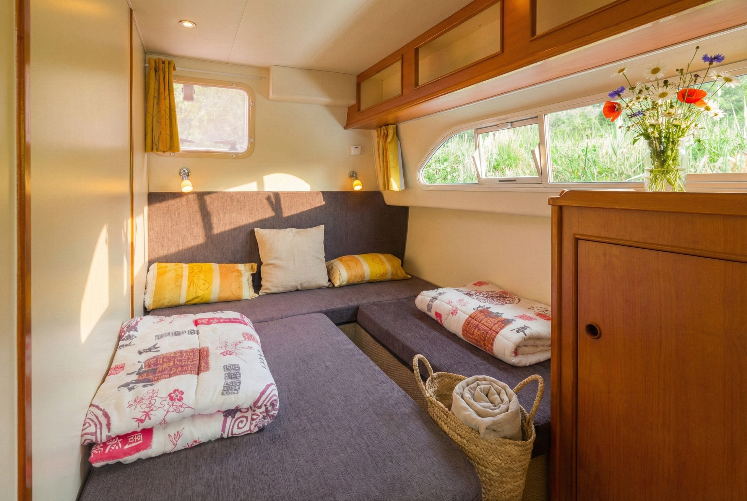El Cruiser Premium 6 Pers. cuenta con una capacidad de agua de 370 litros y combustible para aproximadamente 10 días de navegación (370 litros), lo que lo convierte en una opción adecuada para escapadas fluviales de media duración. Sus tres cabinas convertibles, todas con baño en suite, permiten alojar cómodamente hasta 6 personas con total independencia.