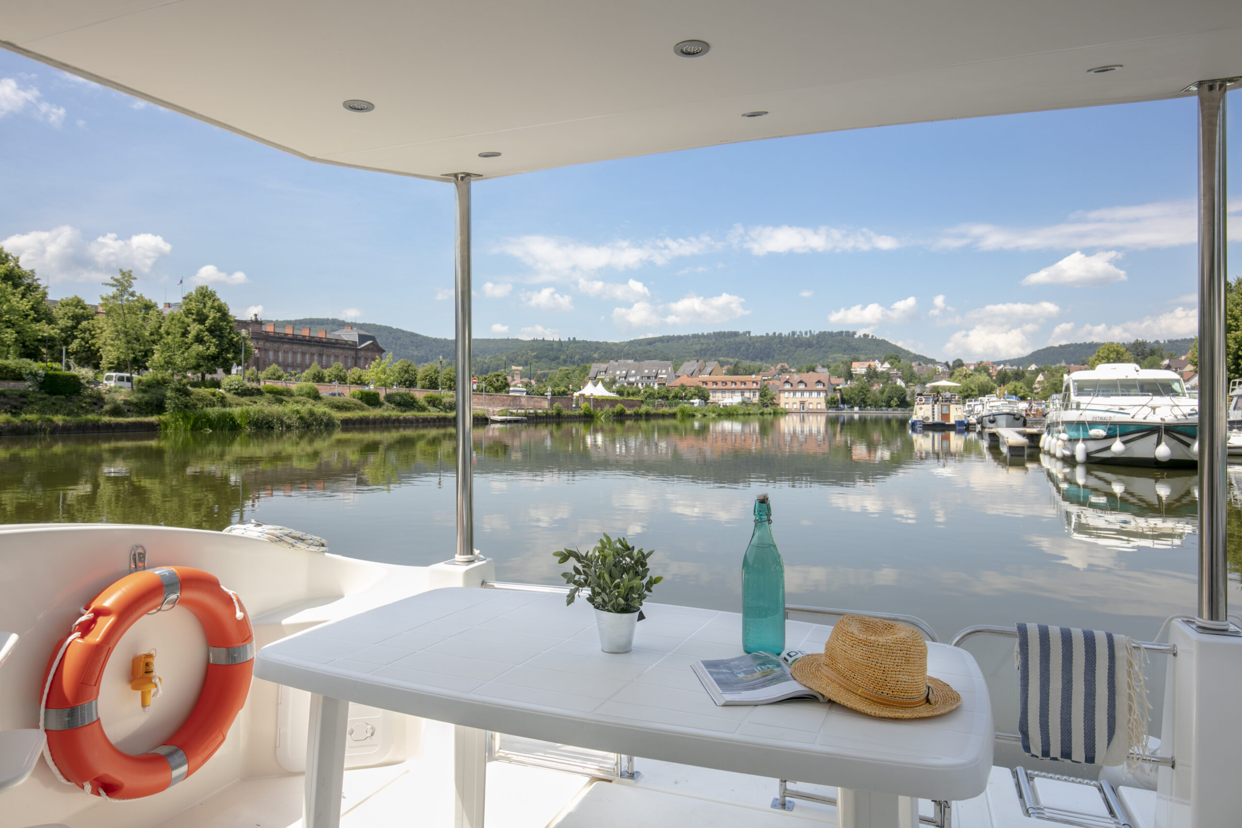 Con aproximadamente 14,95 metros de eslora y 3,85 metros de manga, ofrece una excelente estabilidad y una gran sensación de amplitud en navegación. El doble puesto de mando interior y exterior facilita el control del barco en cualquier situación, mientras que la hélice de proa ayuda en maniobras en esclusas y puertos, haciendo la experiencia accesible incluso para usuarios sin experiencia previa.