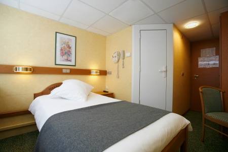 Camarote cómodo con cama individual, baño (lavabo, ducha y aseo privados, toallas incluidas), secador, TV satélite, caja fuerte y radio. Situado en el puente principal con ventanas, ofrece una vista panorámica del paisaje.PUENTE PRINCIPAL 2 CAMAS SEPARABLES CAT B