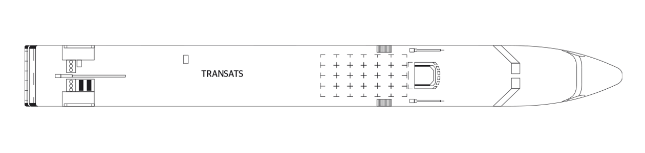 Camarote amplio y cómodo con cama individual, baño (lavabo, ducha y aseo privados, toallas incluidas), secador, televisión, caja fuerte y radio. Situado en el puente principal con ventanas altas, ofrece una vista panorámica del paisaje.10.00