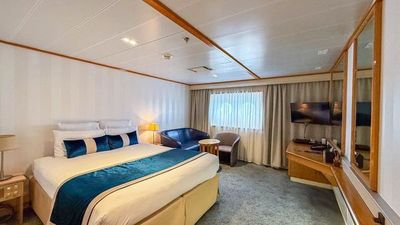 Espaciosa y cómoda camarote con dos camas individuales o una cama grande, acondicionada para personas con movilidad reducida, con pequeñas cómodas de almacenaje, una zona de convivencia con butacas, un baño de mármol con ducha italiana, un vestidor con una caja fuerte personal, un pequeño escritorio, una televisión de pantalla plana, una nevera, un secador de pelo y un teléfono. Este camarote cuenta con dos ojos de buey y una ubicación privilegiada en mitad del barco que permite disfrutar del paisaje que pasa ante los viajeros.