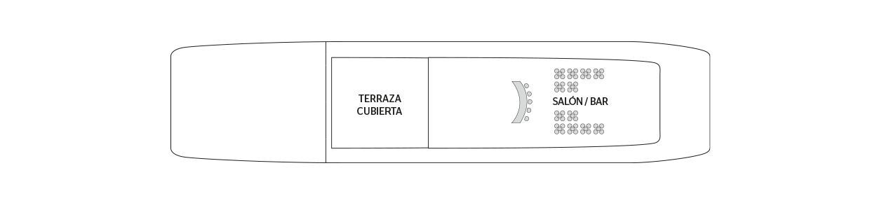 Cabina espaciosa y confortable con grandes ventanas con vista a los pasillos externos. Diseñado con un amplio espacio de almacenamiento, tiene dos camas bajas que se pueden juntar, un baño (lavabo, ducha y baño privado, albornoces), secador de pelo, tocador, caja fuerte y aire acondicionado. Situado en la cubierta principal con grandes ventanas y dan a pasillos exteriore, ofrece vistas panorámicas del paisaje.PUENTE SUPERIOR