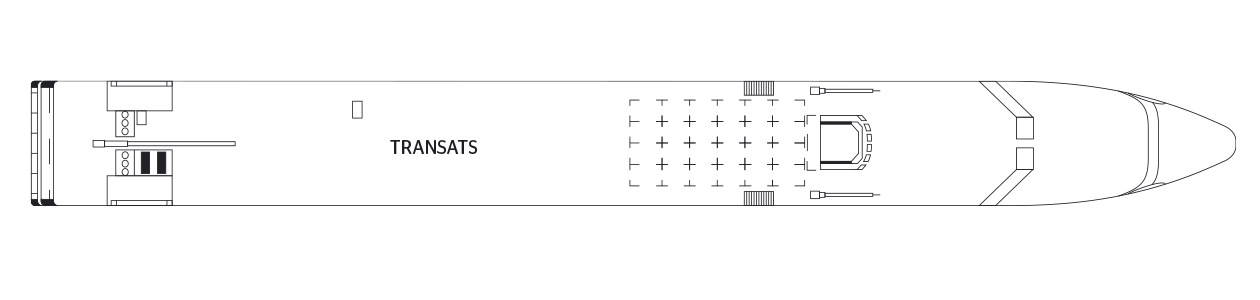 Camarote amplio y cómodo con cama grande separable, baño (lavabo, ducha y aseo privados, toallas incluidas), secador, televisión, caja fuerte y radio. Situado en el puente principal con ventanas grandes, ofrece una vista panorámica del paisaje.PUENTE SUPERIOR