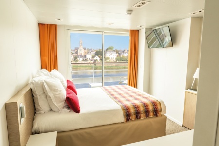 Un ambiente "real" para descubrir los Castillos del Loira junto al agua. Un guiño a los famosos "inexplosibles" que cruzaban el Loira en el pasado: una gran chimenea se encuentra en el medio de la terraza. Los espacios de convivencia están generosamente acristalados y los camarotes en el puente superior disponen de terrazas con mobiliario exterior.