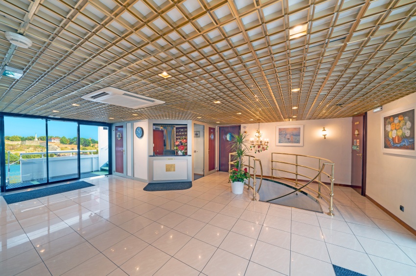 Camarote amplio y cómodo con cama grande, baño (lavabo, ducha y aseo privados, toallas incluidas), secador, televisión, caja fuerte y radio. Situado en el puente superior con ventanas altas correderas, ofrece una vista panorámica del paisaje.Áreas comunes del barco