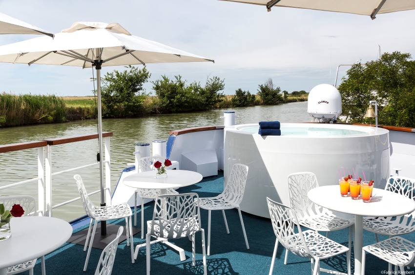 Al nivel del puente superior está el restaurante, que ofrece una cocina delicada en un ambiente refinado, el salón-bar y una zona de relax con jacuzzi. En el puente sol, lugar ideal para relajarse y admirar los paisajes, los pasajeros pueden disponer de cómodas tumbonas. Un viaje a bordo del Peniche MS Anne-Marie es la promesa de una escapada inolvidable al ritmo del agua.
