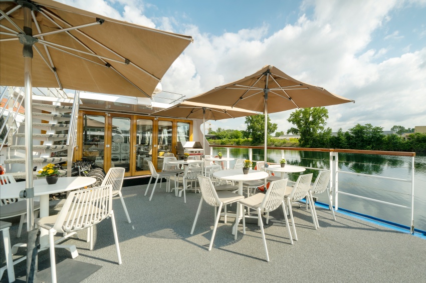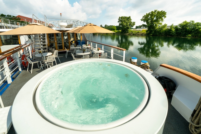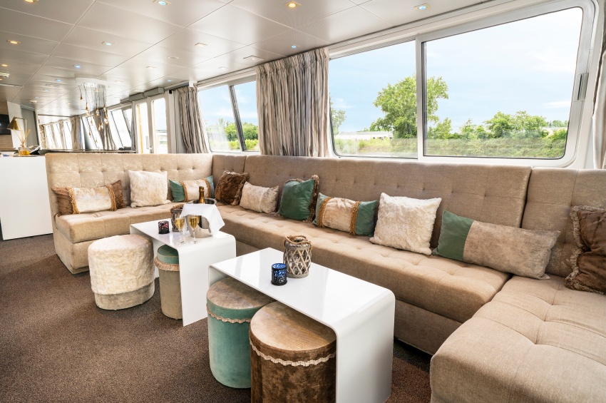 En el mismo puente encontramos también el salón / bar y el jacuzzi, mientras que el puente sol, equipado con cómodas tumbonas, es el lugar ideal para relajarse y disfrutar tranquilamente de los paisajes al ritmo del agua.