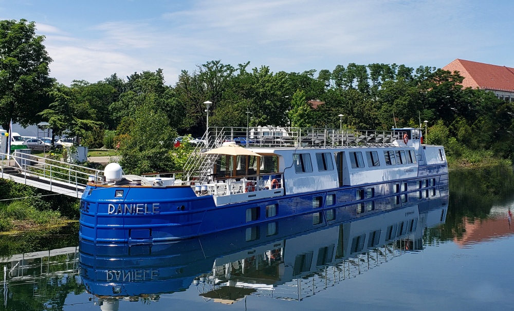 El MS Danièle es un magnífico peniche de 5 anclas. Mide 38,5 metros de largo y 5,07 metros de ancho. Tiene capacidad para 22 pasajeros alojados en 11 camarotes, cada uno de ellos con todas las comodidades y las mejores condiciones para la estancia a bordo. Todo está cuidado hasta el más mínimo detalle y los pasajeros tienen una atención personalizada, promesa de un crucero inolvidable. Los colores solares y nacarados evocan tesoros marinos y la decoración combina armoniosamente el verde del agua, el oro y el bronce, creando una atmósfera particularmente tranquila y acogedora.