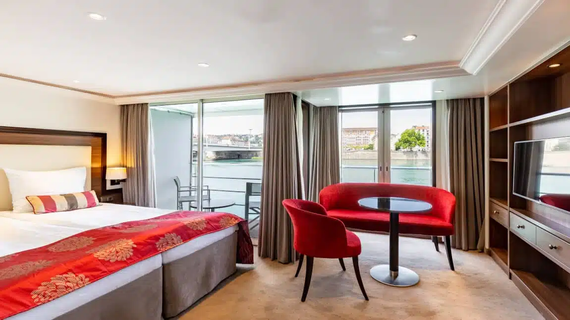 Camarote doble con balcón francés ubicado en puente intermedio con cama de matrimonio separable (bajo petición). Está elegantemente decorada, exterior con ventana tipo balcón francés, a/c y calefacción, TV de pantalla plana, teléfono, secador y caja fuerte. El cuarto de baño dispone de ducha convencional con mampara de cristal.Puente Superior