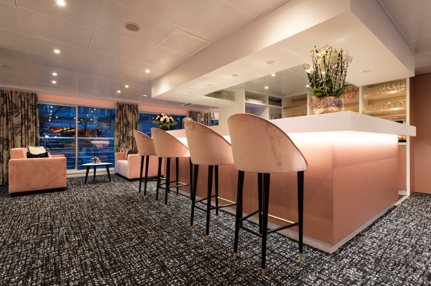 Adoptando el espíritu “French chic”, este barco ha sido decorado en un estilo clásico, elegante y gráfico inspirado en la amistad entre Coco Chanel y Auguste Renoir. El rosa empolvado se alterna sutilmente con matices antracita.