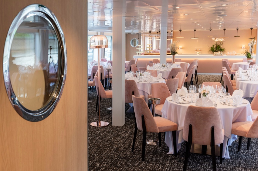 Ubicado en el nivel de la cubierta superior, el restaurante en el que se servirán todas las comidas durante el crucero, ofrece un cocina delicada en un ambiente refinado, donde grandes ventanales permiten disfrutar plenamente de las vistas. En esta misma cubierta también seencuentra el salón / bar con pista de baile. Es Imprescindible la visita del puente sol para descansar. Está equipado con sillones y tumbonas que propician el relax mientras se disfruta de una vista panorámica de los paisajes.