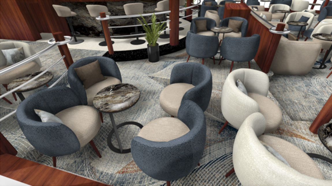 El bar se encuentra en la zona delantera del puente superior, donde puede tomar un refresco y disfrutar en los cómodos asientos de la navegación. Tiene un diseño de teatro con 4 niveles, un escenario, pista de baile y piano electrónico, pantalla y proyector.