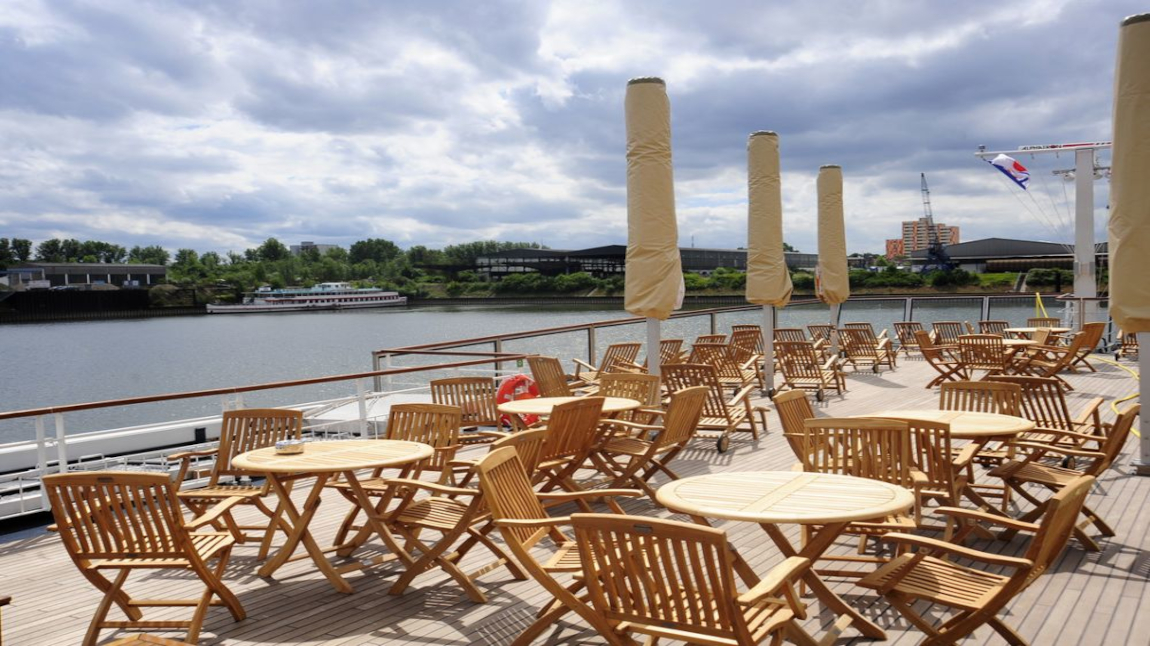El barco MS River Crown, con capacidad para 100 pasajeros, navega por el Rin, el Meno, el Mosela y el Danubio. Se trata de un barco que ofrece una experiencia íntima y cómoda.
