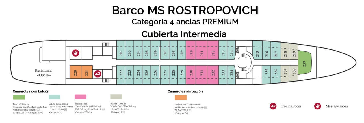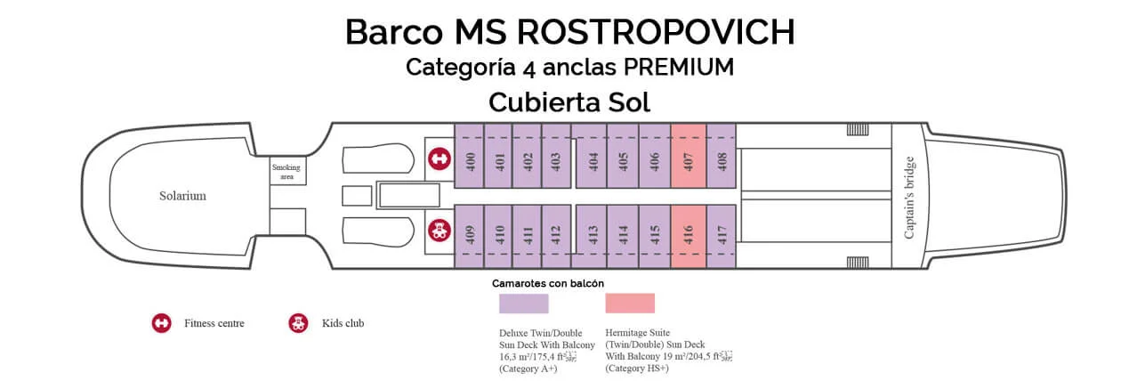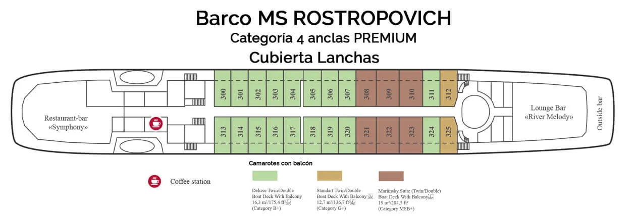 NOTAS: En este barco fluvial por el Volga no existe la posibilidad de reservar un camarote adaptado para personas con movilidad reducida. Consulten en el momento de la reserva.