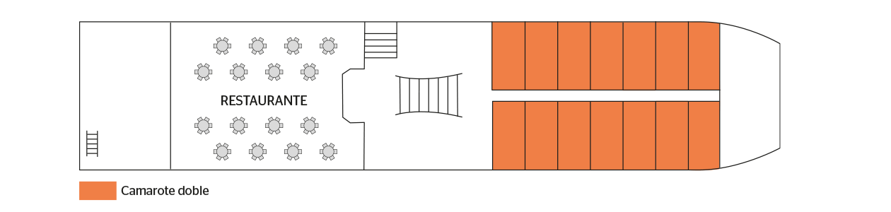 Situado en el puente superior, el restaurante es donde se sirven todas las comidas durante el crucero. Gracias a sus grandes ventanas panorámicas, no se perderá los hermosos paisajes durante sus comidas.