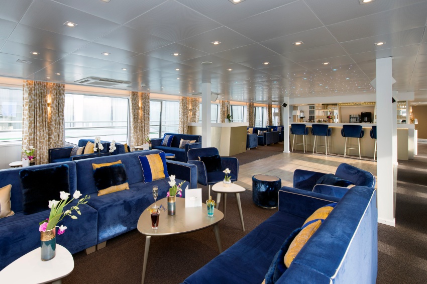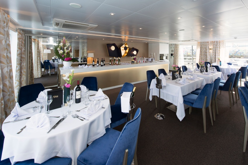 Ubicado en la cubierta superior se encuentra el restaurante, donde se sirven todas las comidas durante el viaje. Ofrece una cocina delicada en un ambiente refinado en el que los grandes ventanales permiten disfrutar plenamente de las vistas. En esta misma cubierta se encuentra el salón / bar, con pista de baile, mientras que en el puente sol, lugar ideal para el relax y para admirar los paisajes, los pasajeros tendrán a su disposición cómodas tumbonas y una gran área sombreada.