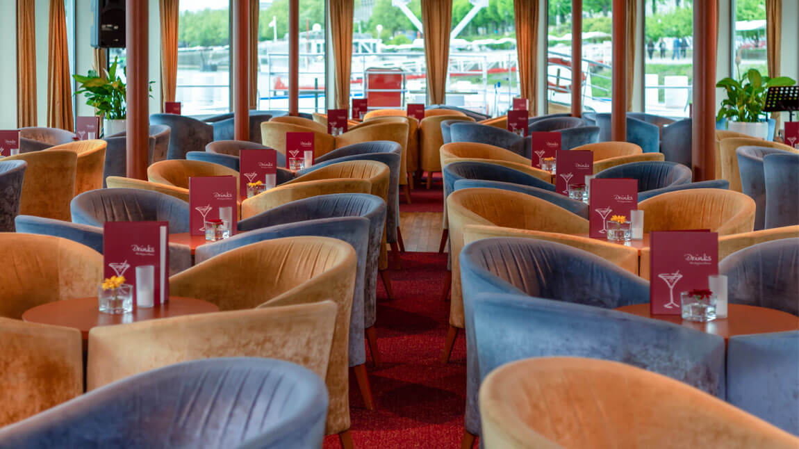 El restaurante y el bar lounge están ubicados en el puente Superior, ofreciendo a los pasajeros posibilidad de desplazarse por zonas públicas sin bajar escaleras. A bordo, hay un ascensor que conecta las cubiertas Intermedia y Superior.