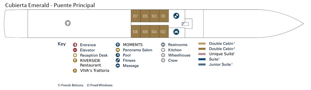 Este barco será la mejor opcion para aquellos que busquen exclusividad. Con 110 metros de eslora, ofrece una experiencia íntima para tan solo 104 pasajeros en 52 camarotes más de la mitad de los cuales son suites de hasta 30 m².